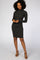 A solid ribbed fitted long sleeve dress. Features mock neck.