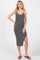 Charcoal Ribbed Side Slit Sleeveless Midi Dress