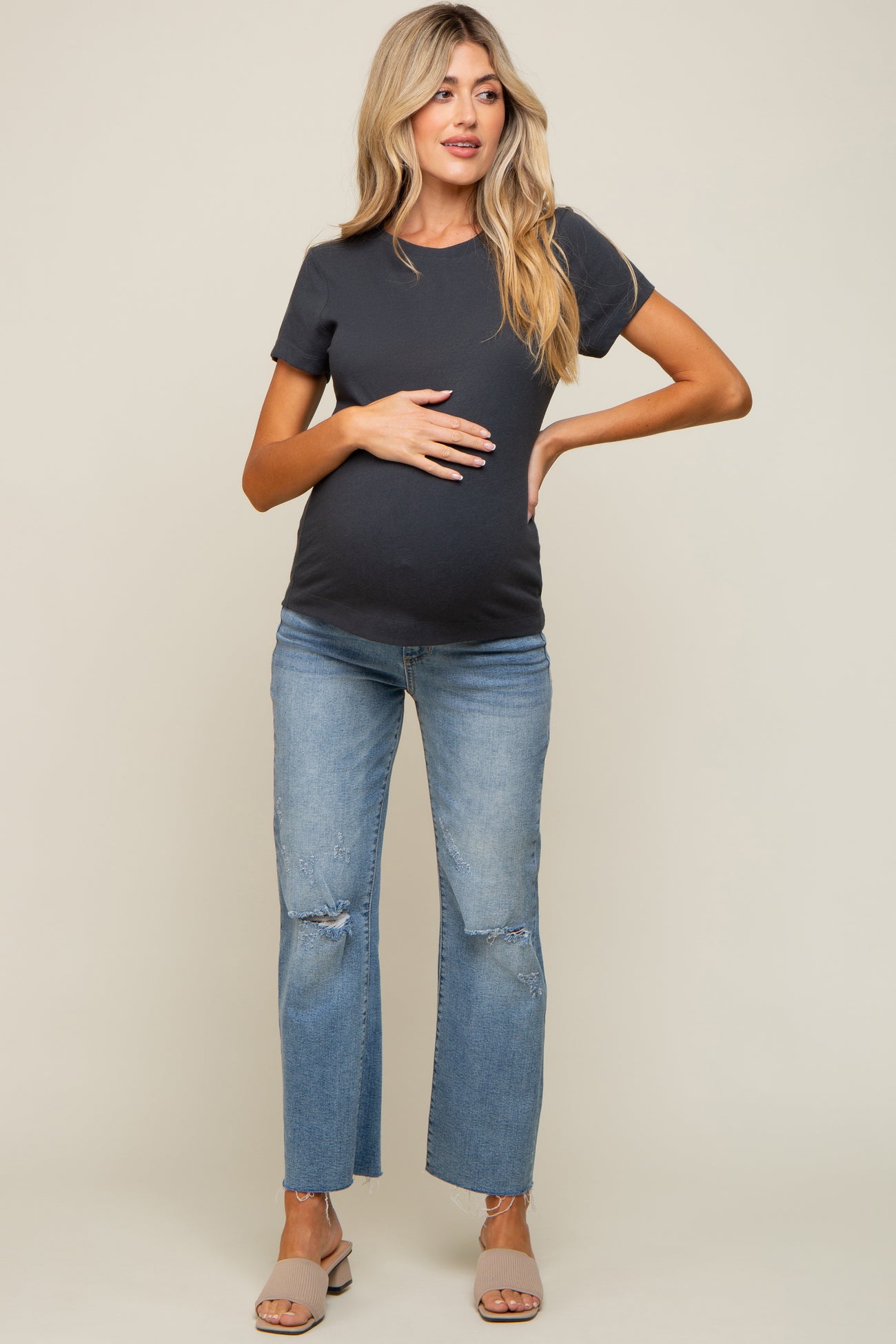 Charcoal Short Sleeve Maternity Top