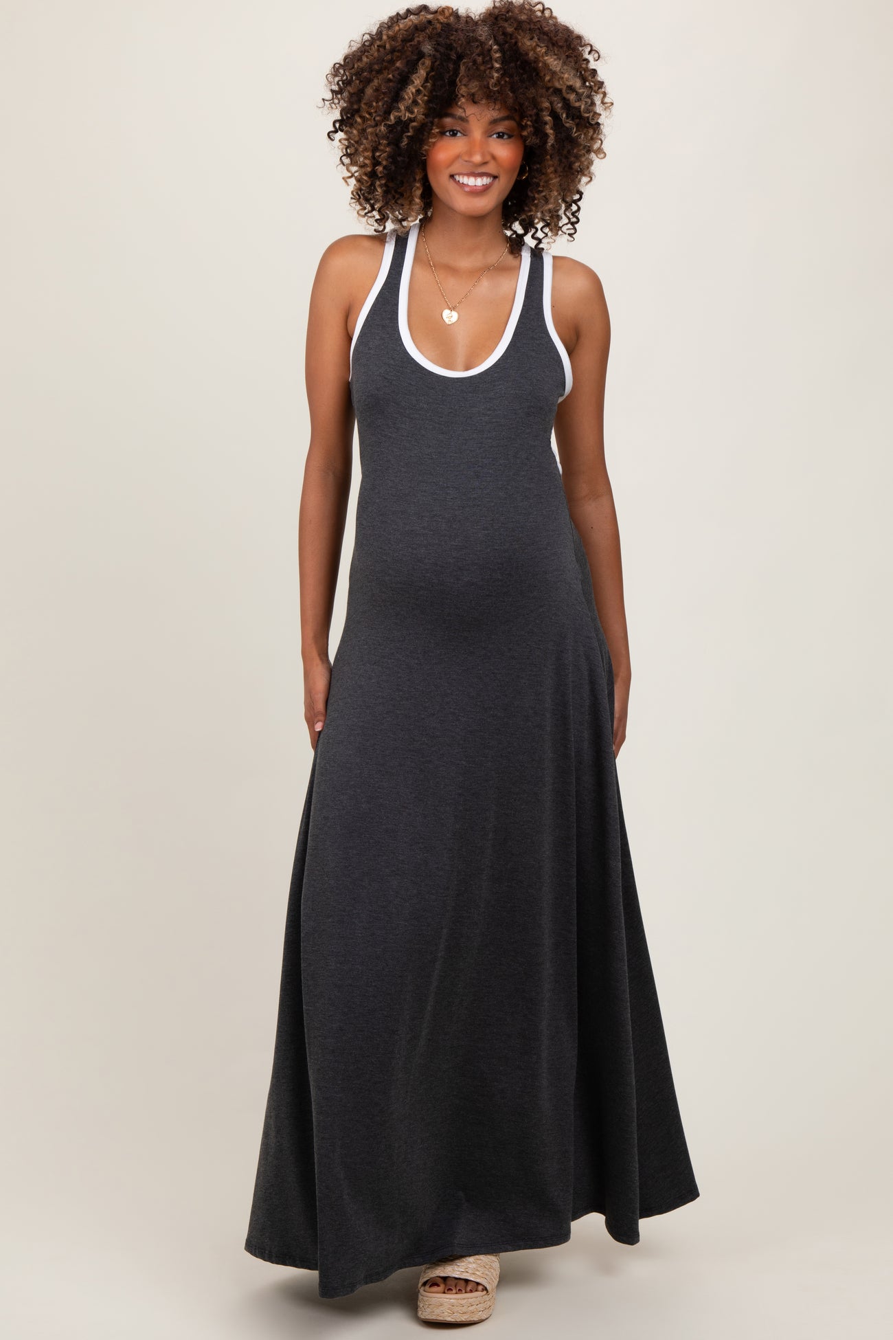 Charcoal Solid Open Back Sleeveless Maternity Maxi Dress