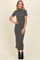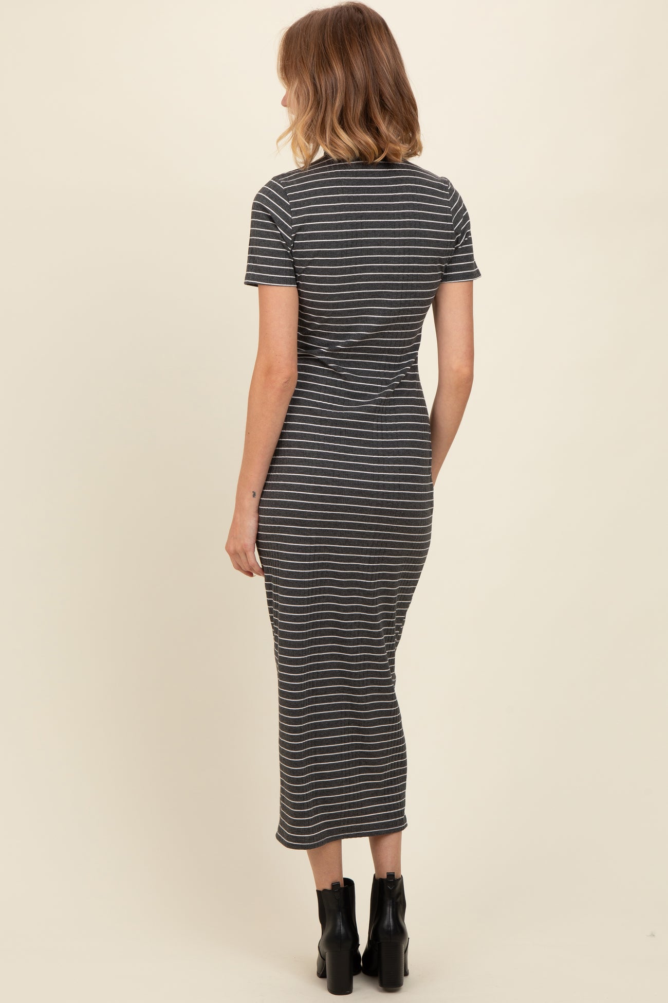 Charcoal Striped Mock Neck Fitted Midi Dress