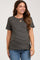 A striped knit maternity top featuring a crew neckline and short sleeves.