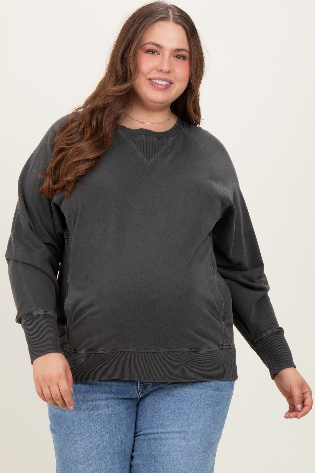 Charcoal Vintage Wash French Terry Maternity Plus Pullover