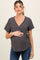 Charcoal Wrap Short Sleeve Raw Hem Maternity Top
