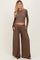 Coffee Long Sleeve Top Pleated Wide Leg Pants Texture Maternity Set