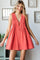 Coral Deep V-Neck Pleated Front Tie Sleeveless Romper