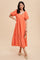 Coral Eyelet Scalloped V-Neck Short Puff Sleeve Midi Dress