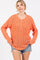 An open knit sweater with front functioning buttons, and long drop shoulder sleeves.
