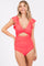 Coral Pink Cutout Flutter One Piece Swimsuit