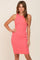 A sleeveless ribbed fitted dress. Rounded neckline.