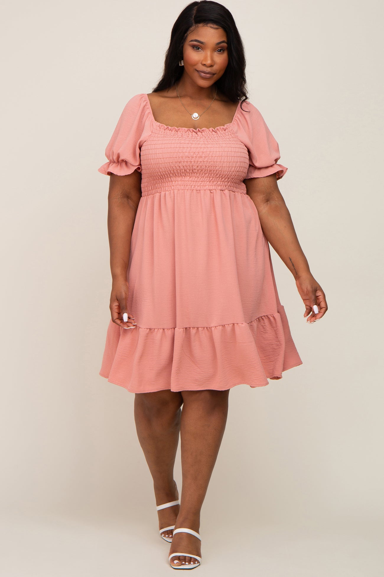 Coral Smocked Ruffle Trim Plus Maternity Dress