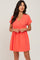 A swiss dot dress with a v-neckline, short dolman sleeves, a lined skirt, and side pockets.