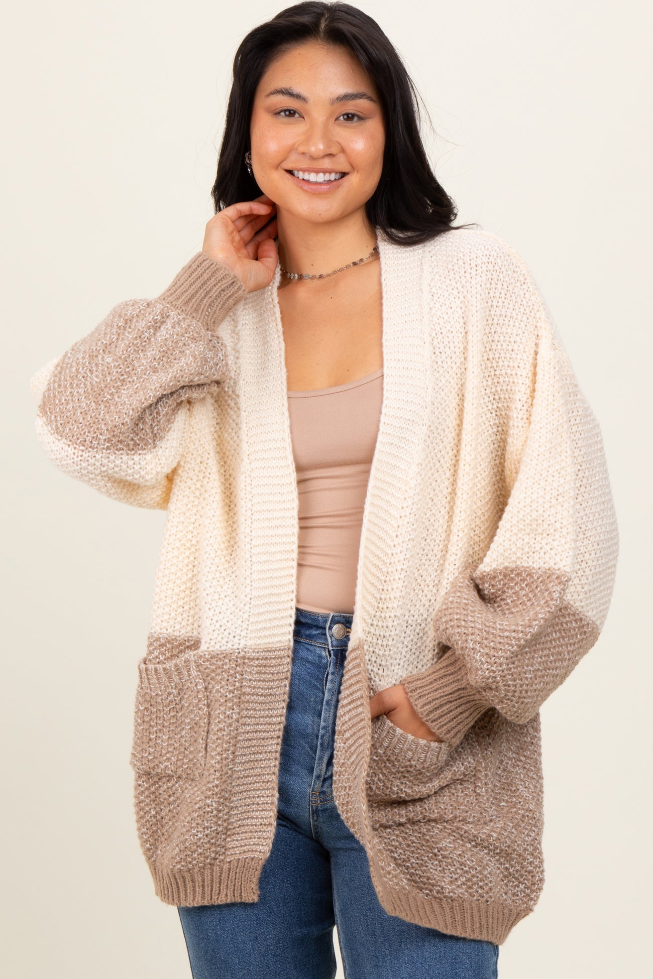 Cream Colorblock Bubble Sleeve Knit Cardigan