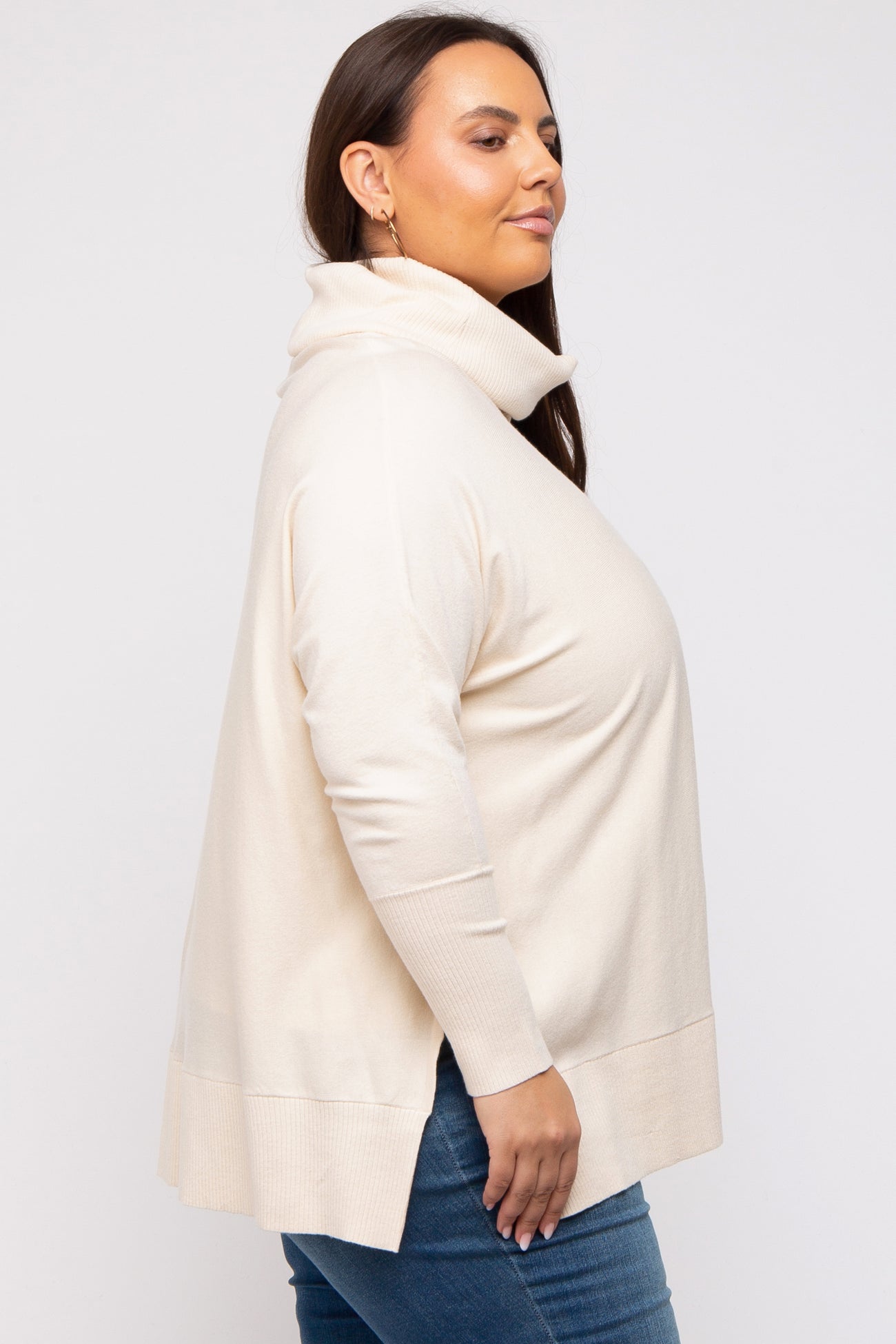 Cream Cowl Neck Dolman Sleeve Plus Sweater