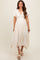 Cream Deep V-Neck Puff Short Sleeve Asymmetrical Hem Maternity Midi Dress