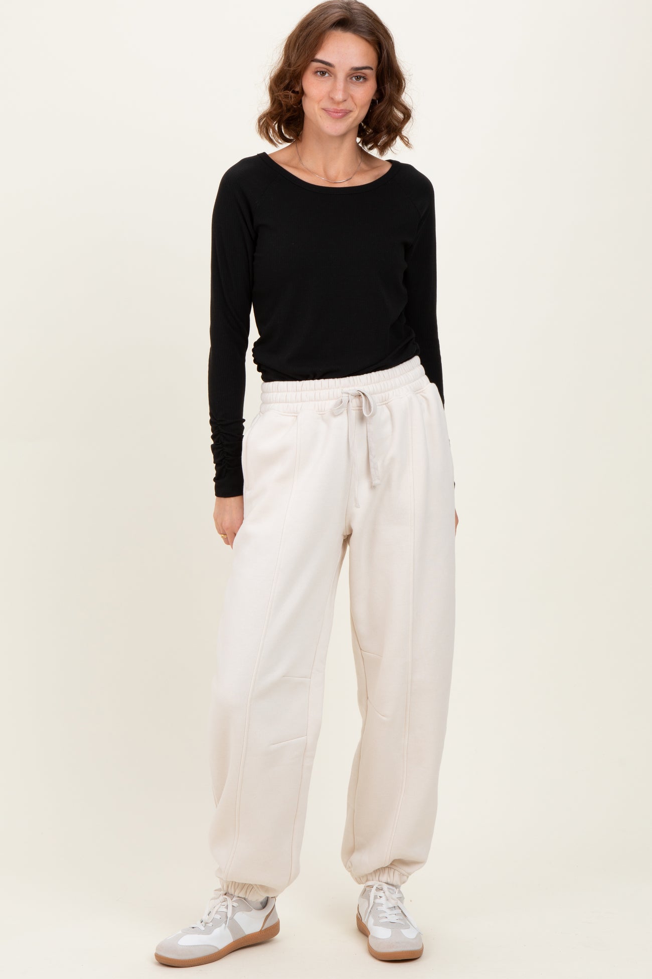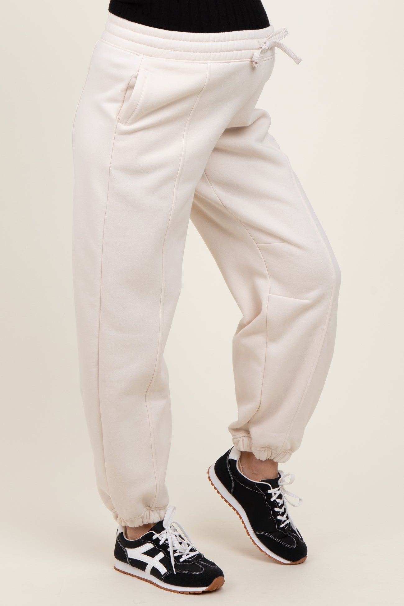Cream Drawstring Relaxed Fit Maternity Sweatpants