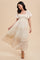 Cream Floral Smocked Square Neck Flutter Sleeve Midi Dress