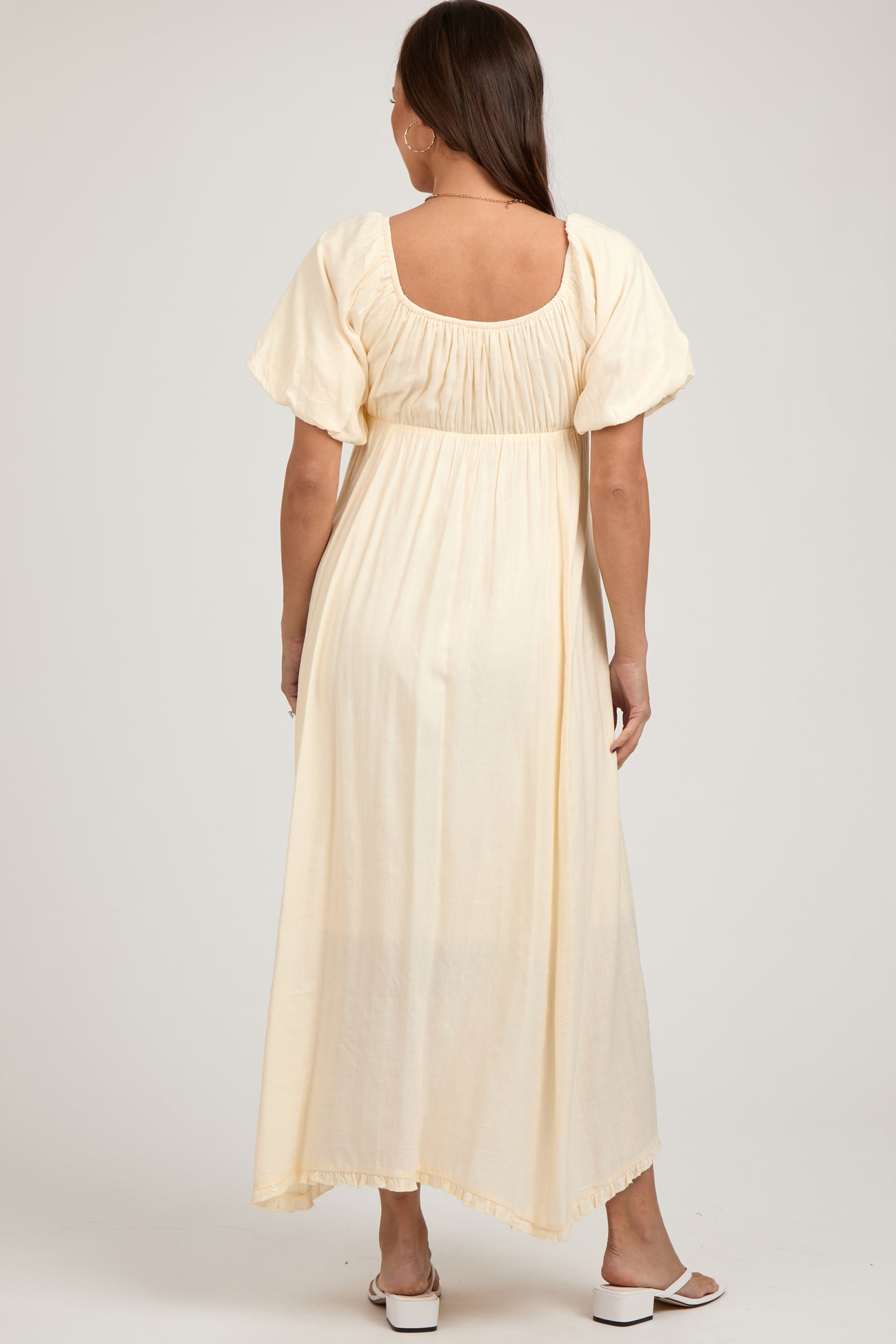 Cream Front Tie Puff Sleeve Maternity Maxi Dress