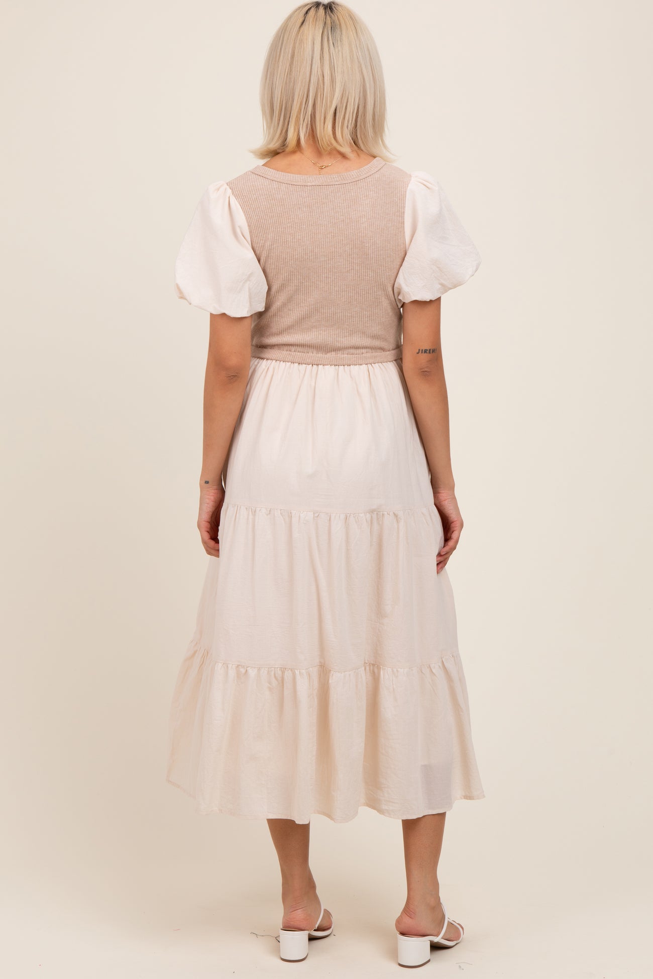 Cream Knit Mixed Tiered Maternity Midi Dress