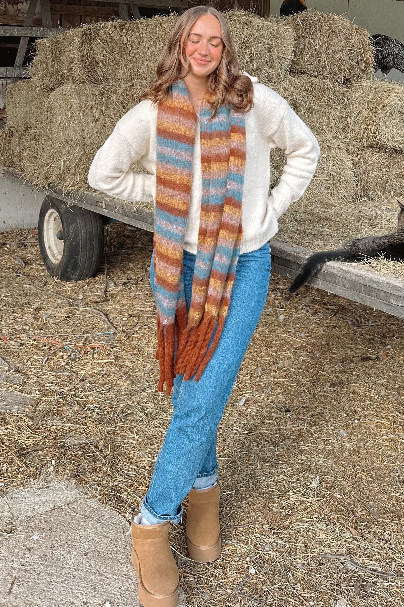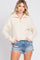 A knit pullover sweater featuring a zip-up neckline and long sleeves.
