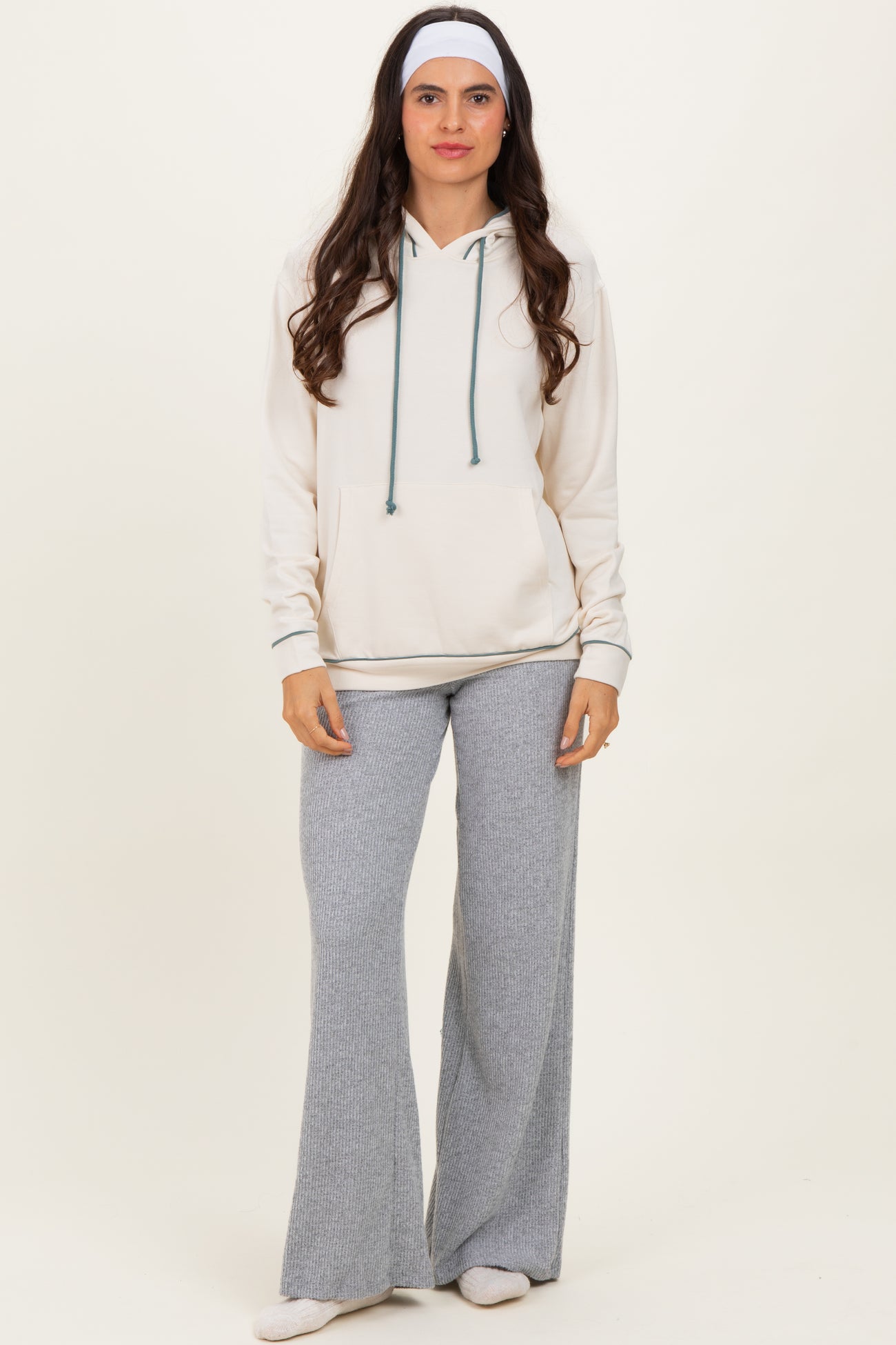 Cream Light Olive Contrast Drawstring Maternity Hoodie