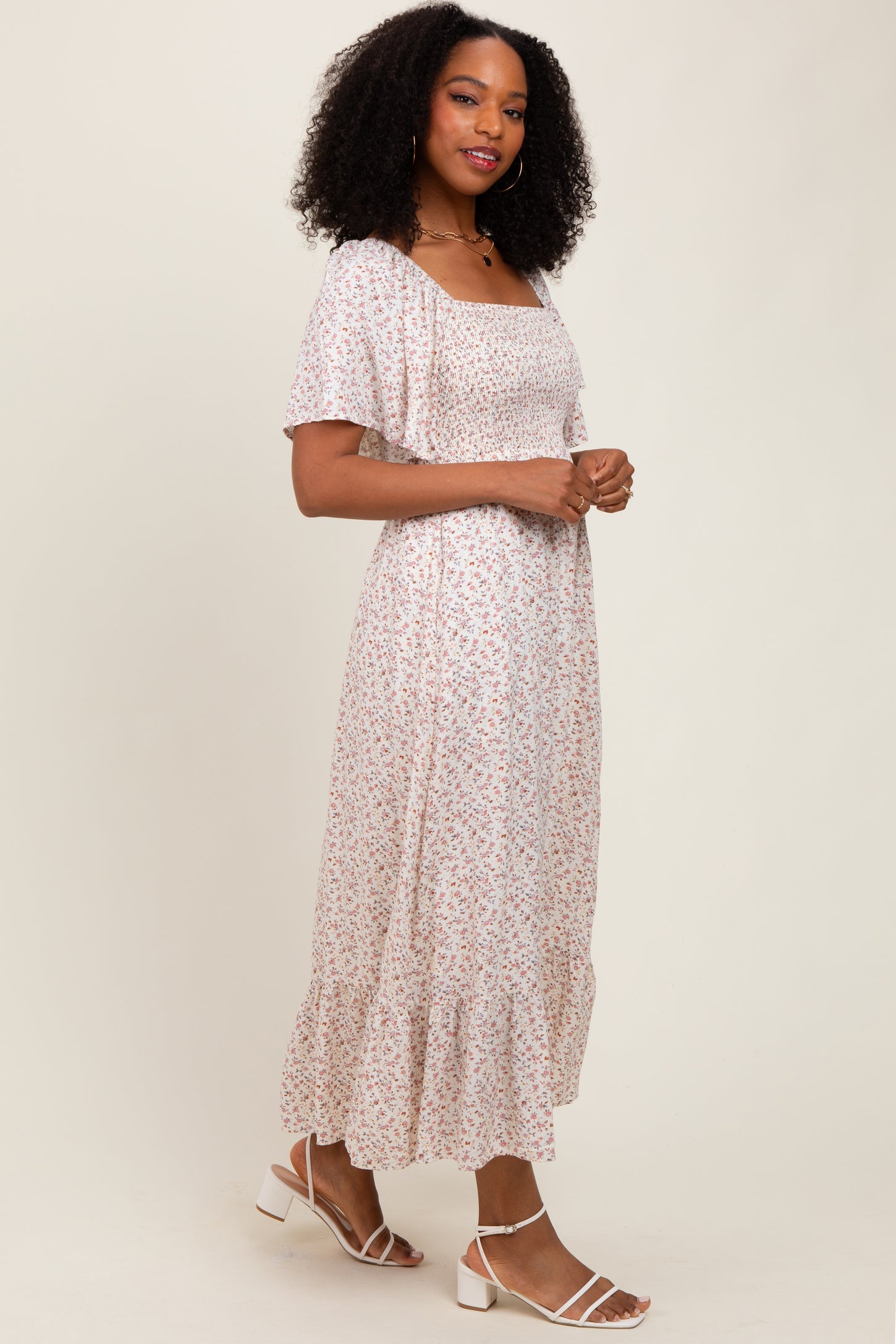 Cream Multi Ditsy Floral Smocked Midi Dress