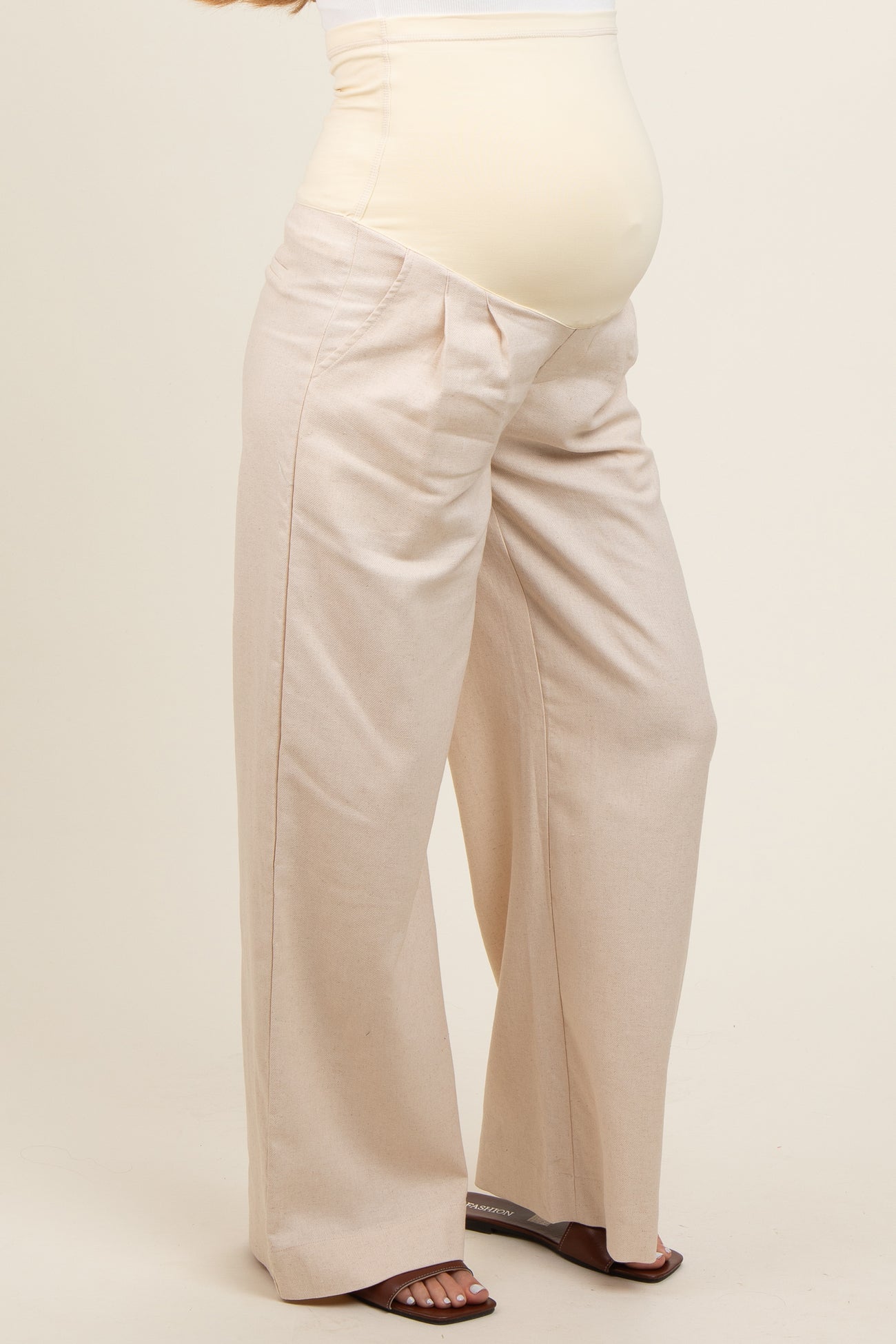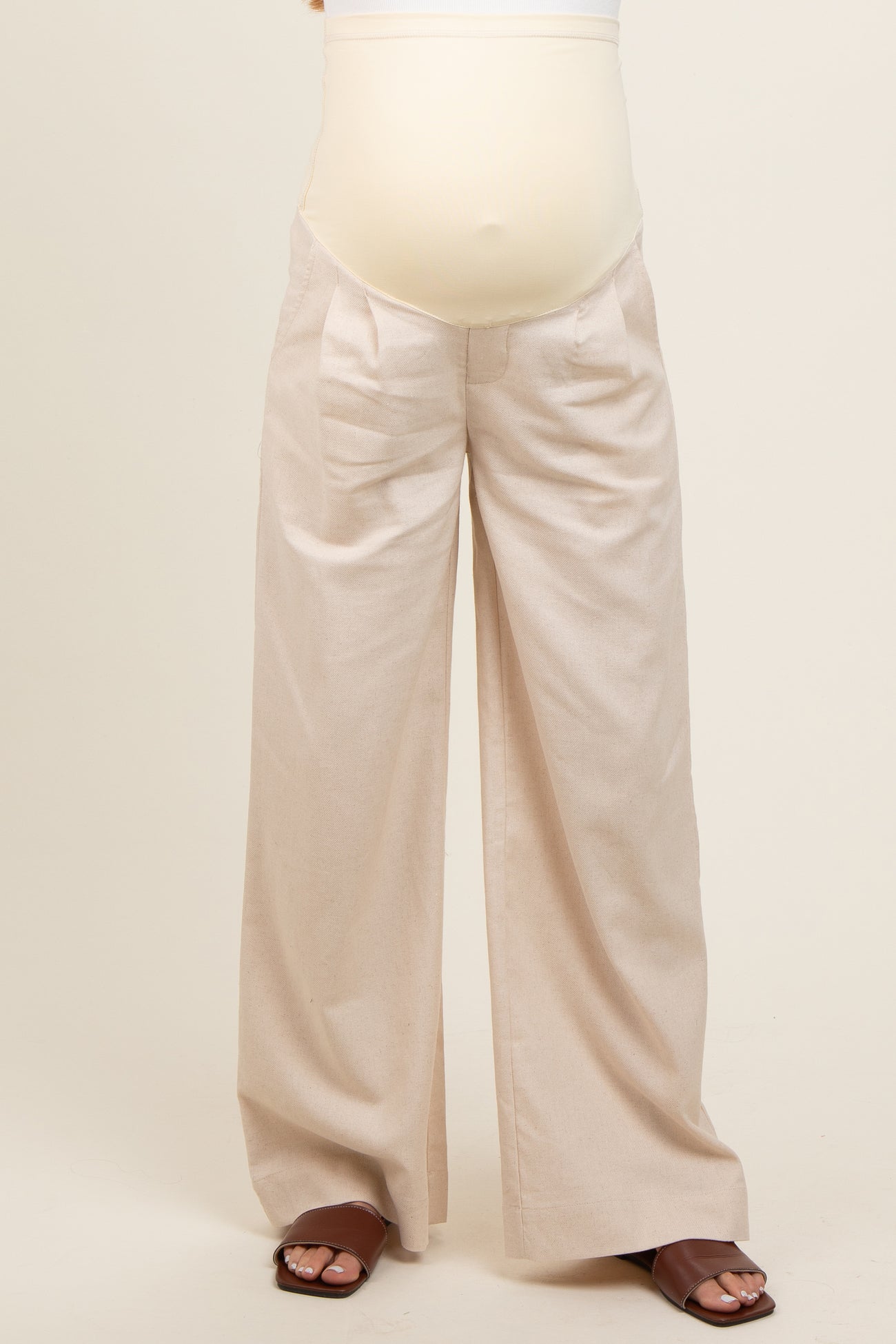 Cream Pleated Wide Leg Maternity Pants