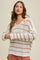 Cream Striped Open Knit Hooded Long Sleeve Top