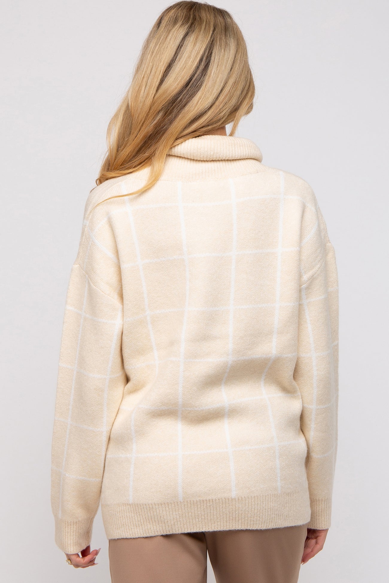 Cream Windowpane Ultra Soft Knit Turtleneck Maternity Sweater
