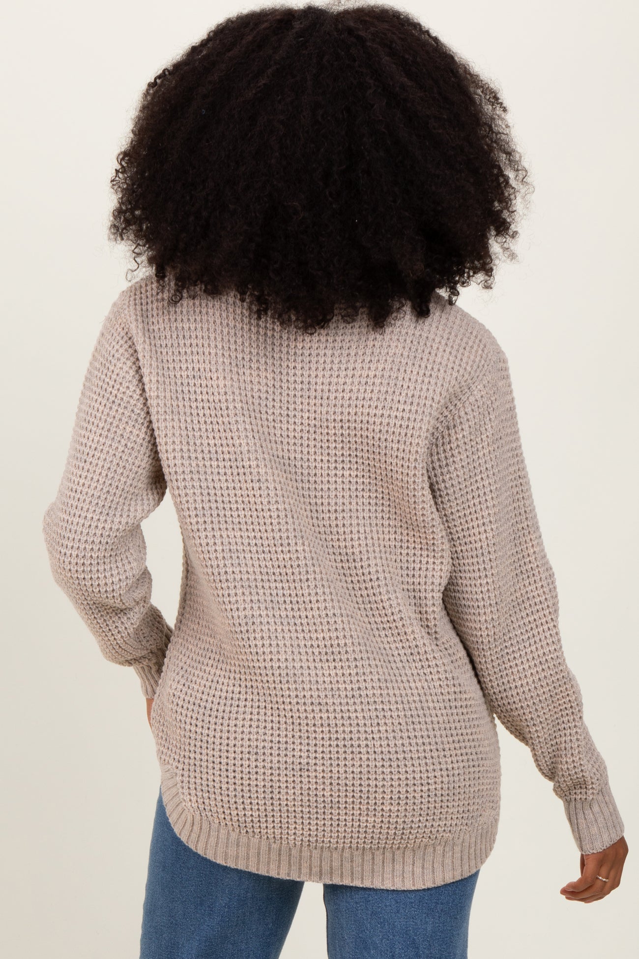 Dark Beige Waffle Knit Rounded Hem Sweater