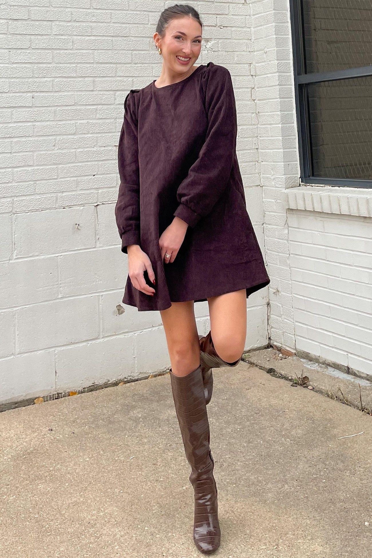Dark Brown Corduroy Mini Dress