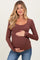 Dark Mocha Ribbed Square Neck Long Sleeve Maternity Top