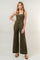 Dark Olive Sleeveless Fitted Jumpsuit With Pockets