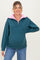 Dark Teal Contrast Collar Half Zip Maternity Sweater