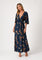 Dark Teal Floral Deep V-Neck Short Sleeve Front Slit Maxi Dress