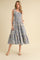 Denim Floral Smocked Ruffled Lace Trim Midi Dress