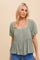 Dusty Olive Swiss Dot Bubble Sleeve Peplum Blouse