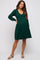 A solid hue maternity dress featuring a scoop neckline, long puff sleeves, side pockets, and elastic under the bust.