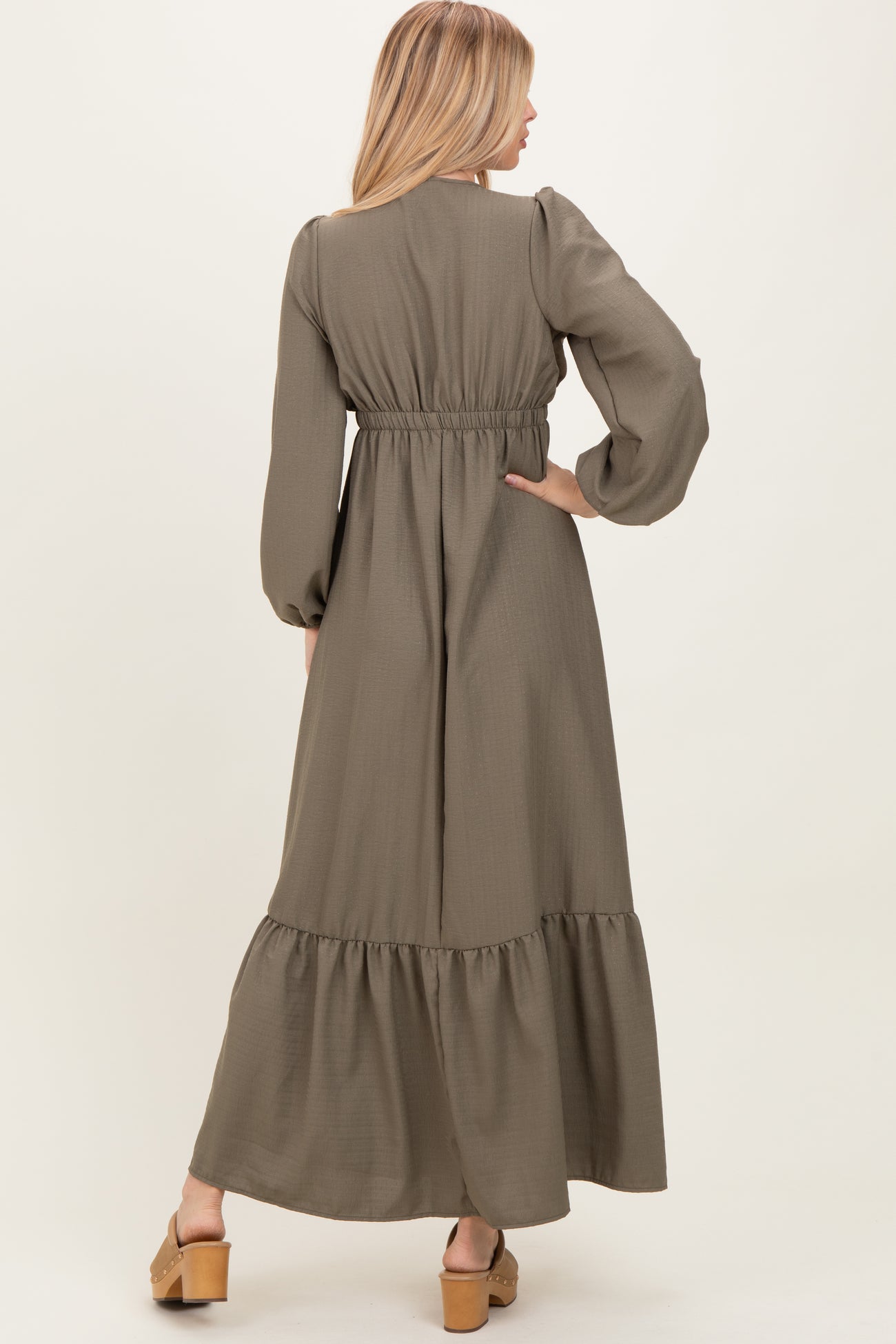 Forest Green Long Sleeve V-Neck Tiered Maxi Dress