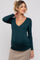 A solid hued maternity top featuring long sleeves and a v-neckline.