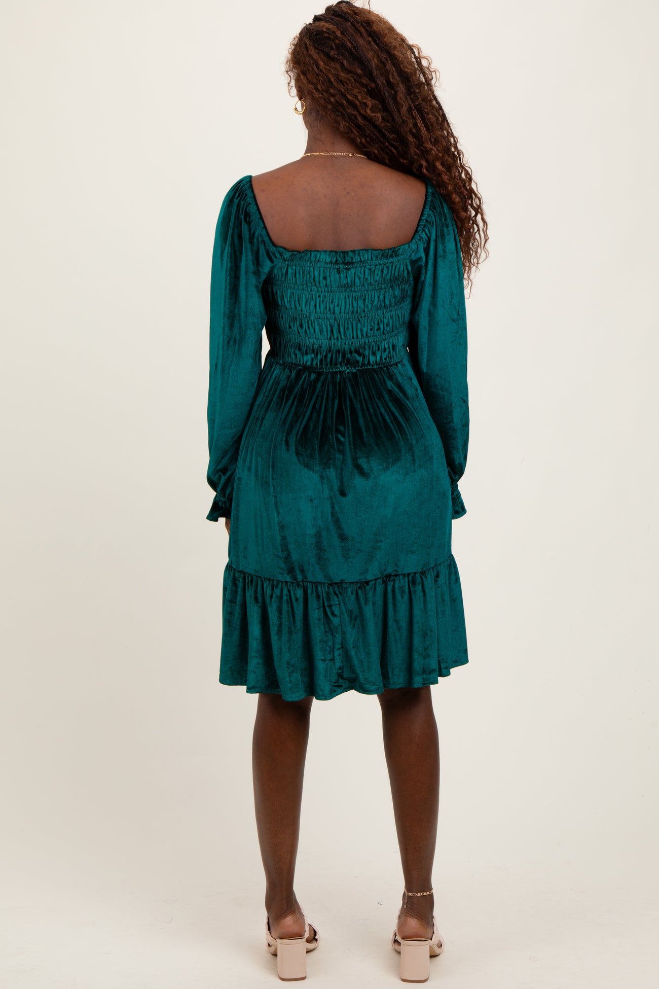 Elevate your style with this stunning Forest Green Velvet Smocked Long Sleeve Dress. Crafted from luxuriously soft velvet, this dress features a flattering smocked bodice that enhances your silhouette while offering comfort and stretch. The elegant square neckline and voluminous long sleeves with gathered cuffs add a touch of vintage charm. The dress flows into a tiered skirt, creating a flattering and feminine shape perfect for any occasion—from casual outings to special events. Pair it with heels or flats for a chic and versatile look that will turn heads all season long.