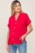 Fuchsia Collared Button-Down Short Sleeve Maternity Blouse