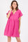 Fuchsia Eyelet Button Front Short Sleeve Dress