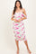 Fuchsia Floral Off Shoulder Ruched Mesh Midi Dress