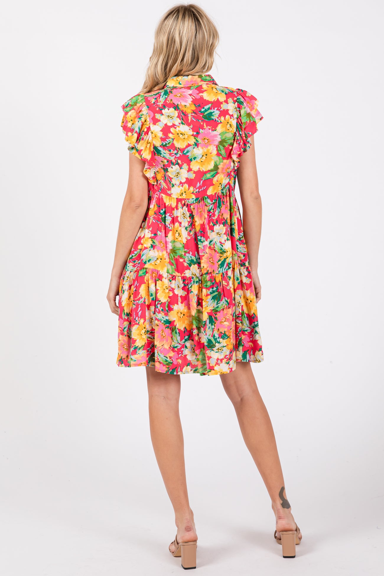 Fuchsia Floral Print Baby Doll Dress