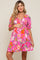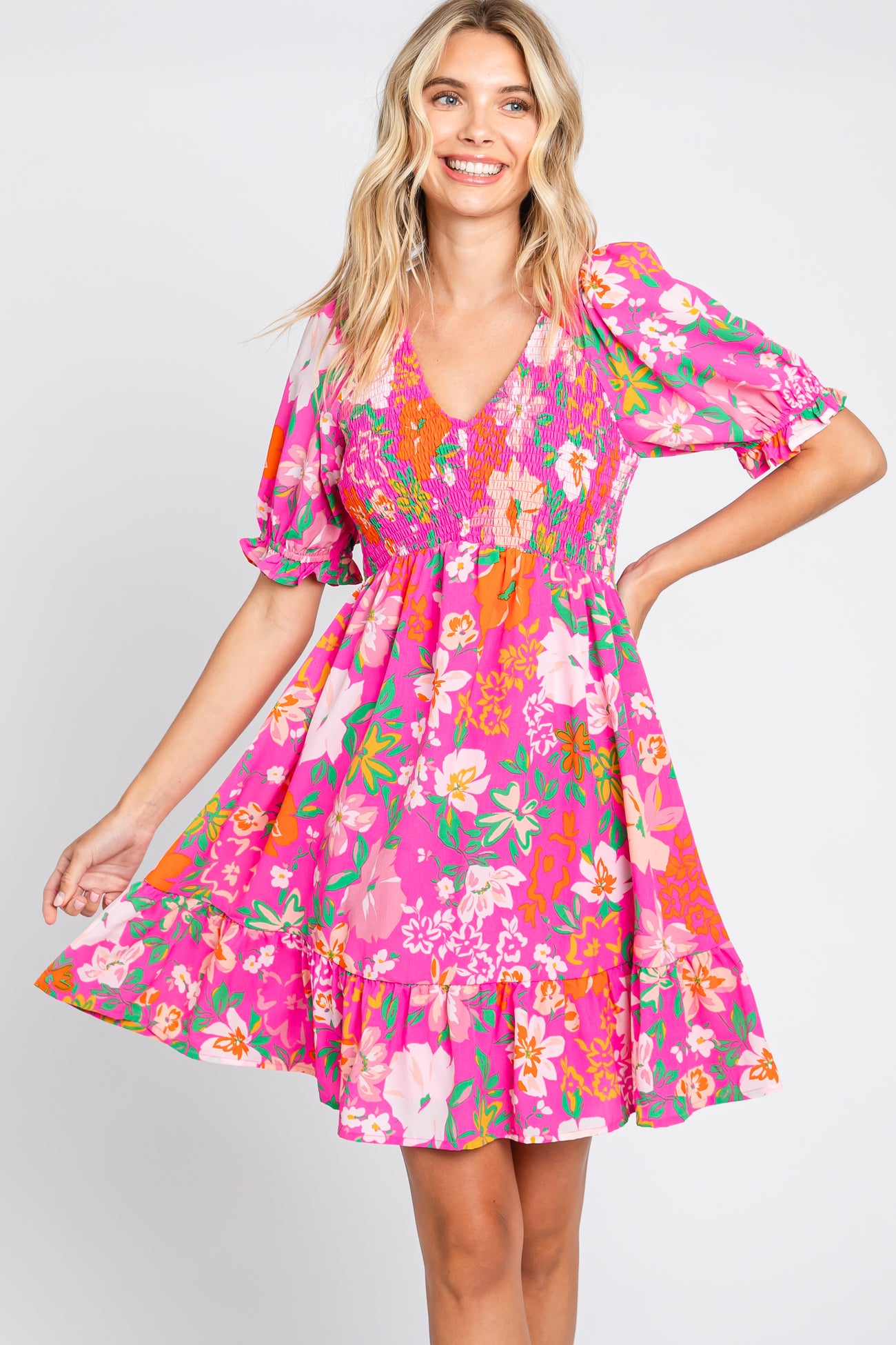 Fuchsia Floral Smocked Puff Sleeve Maternity Dress