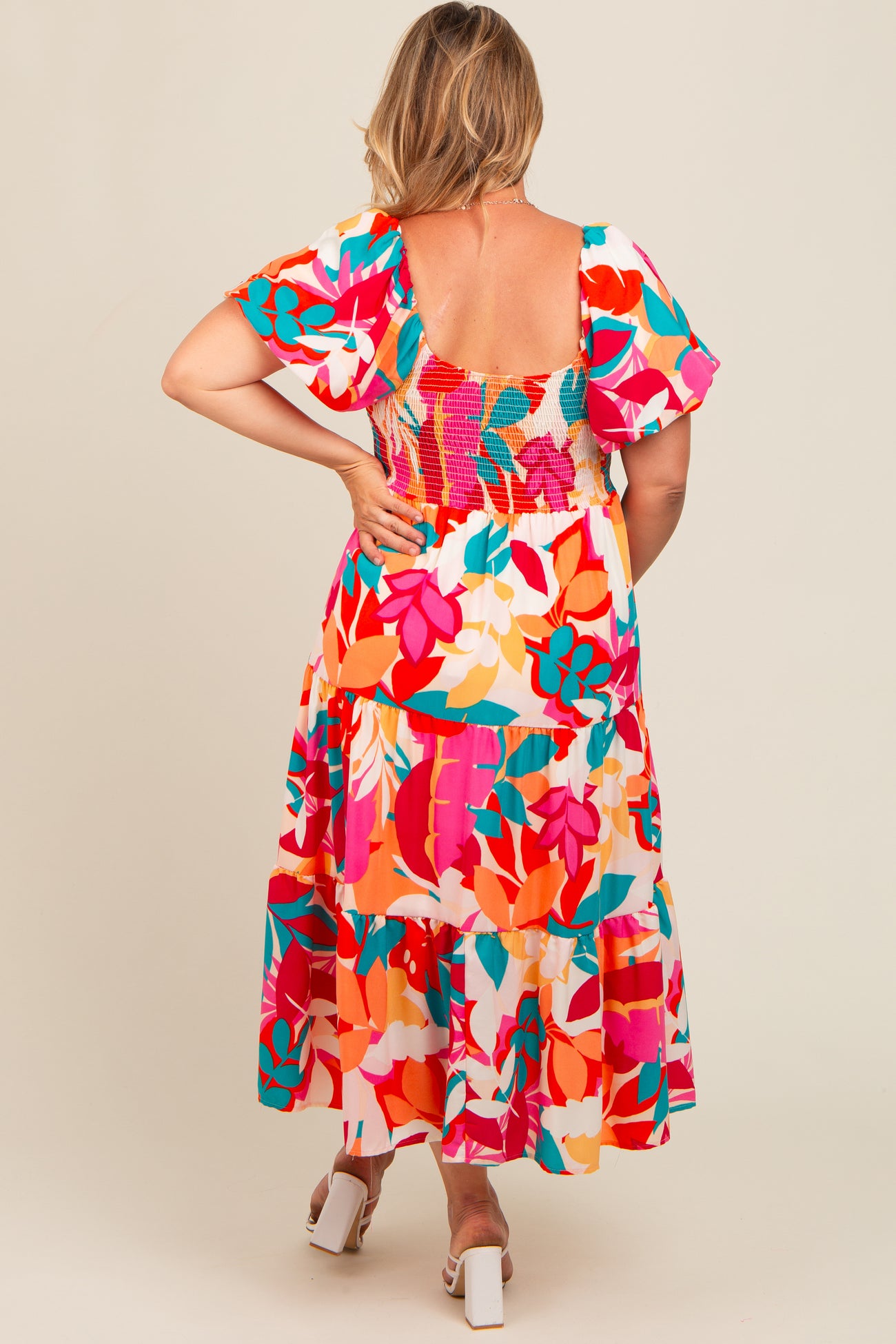 Fuchsia Leaf Print Plus Maternity Maxi Dress