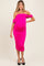 Fuchsia Off Shoulder Draped Ruched Maternity Midi Dress