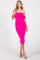 Fuchsia Off Shoulder Sleeveless Ruched Mesh Midi Dress