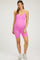 A ribbed maternity romper with a scoop neckline and biker length shorts.